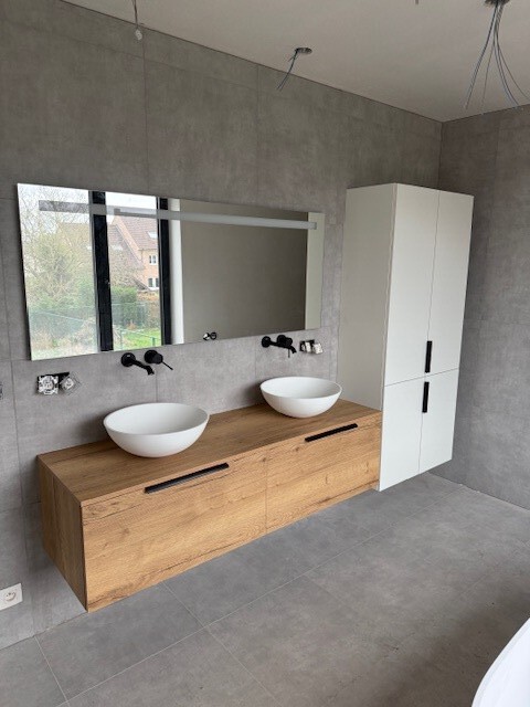 Tijdens de uitvoering zorgen we ervoor dat alle elementen, zowel achter de muren als in de zichtbare afwerking, nauwkeurig geplaatst worden. Zo komt er een badkamer of toiletruimte tot stand die technisch klopt, prettig aanvoelt en perfect aansluit op hoe jij de ruimte dagelijks gebruikt.